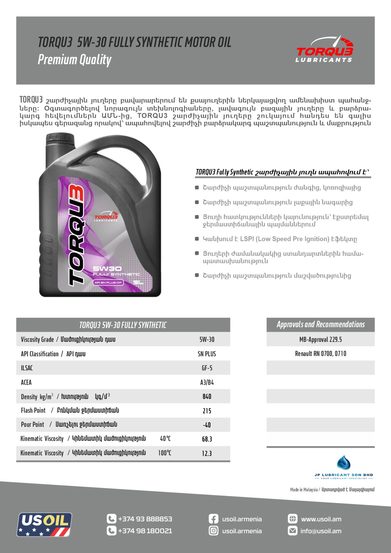 TORQU3 is the brand of lubricants that has been developed by JP Lubricant to meet today’s stringent demands for excellence in lubricant. Using the latest technology, the best base oils stocks from the best refiners in the world like Exxon Mobil, SK, Petronas, Hyundai and blended using top tier additives from USA, JP Lubricant brings truly superior quality lubricants to the market that are superior in every way but most importantly always ensuring superior protection and cleanliness of the engine.